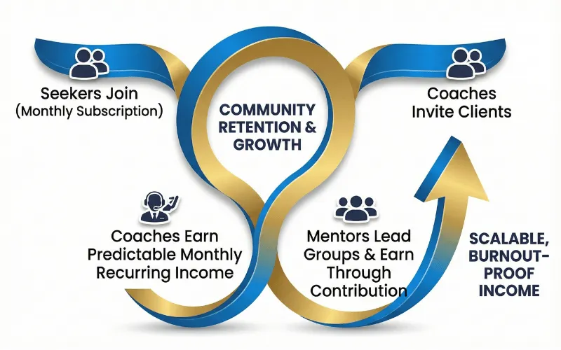 Coaches earn monthly recurring income for every client they bring into the ecosystem, for as long as that client stays.