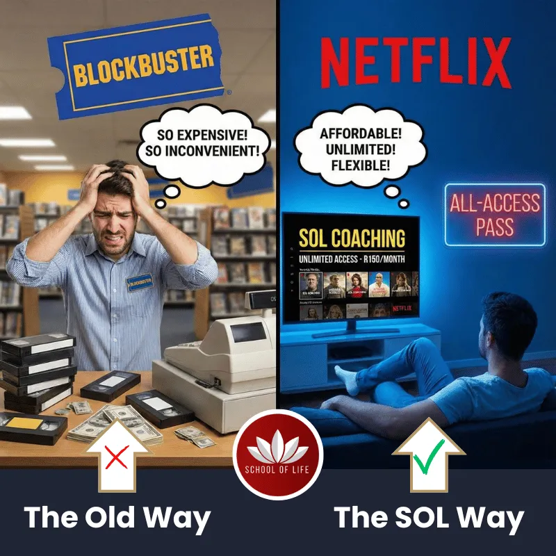 Instead of selling expensive individual sessions, you coach clients inside our network