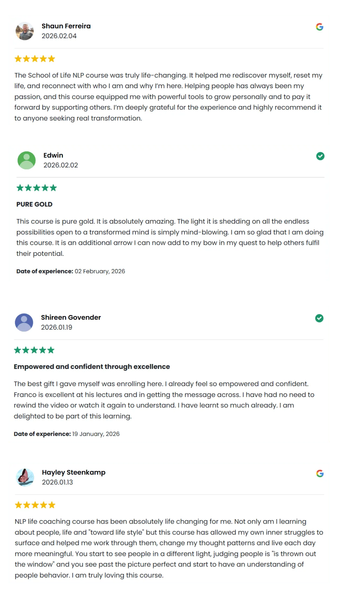 Neuro-Specialist: Certified Neuro Coach & NLP Practitioner.